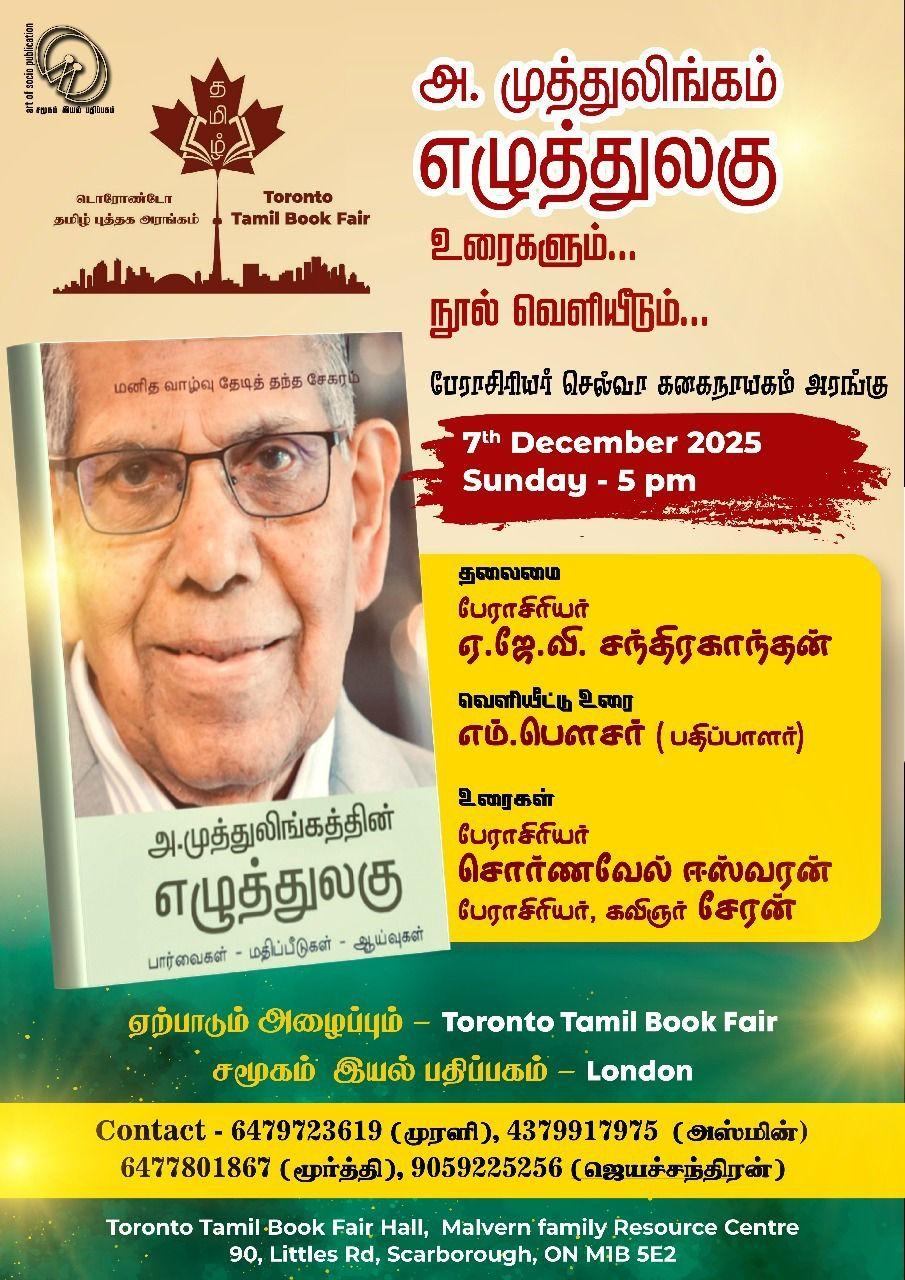 கனடா வாழ் தமிழுலகம் பெருமை கொள்ளும் எழுத்தாளர், சமூகப் பங்களிப்பாளர் , மதிப்புக்குரிய அ. முத்துலிங்கம் அவர்களின் எழுத்துப்பணி குறித்த உரைகளும், அவரது 75 ஆண்டுகால பங்களிப்புக் குறித்த நூல்.